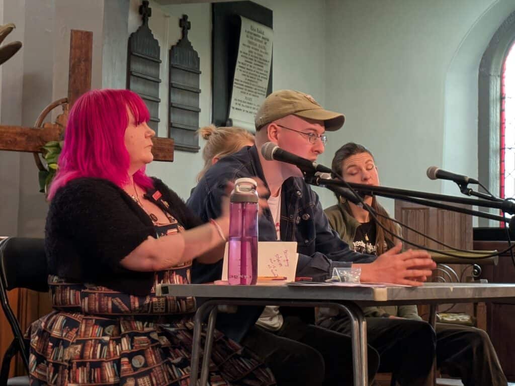 Discussions continued in St Matthew’s Church, with two panels, one for the national picture and a second, involving local activists, about specific issues in the region. This was followed by Trespass Workshops, which proved extremely popular.